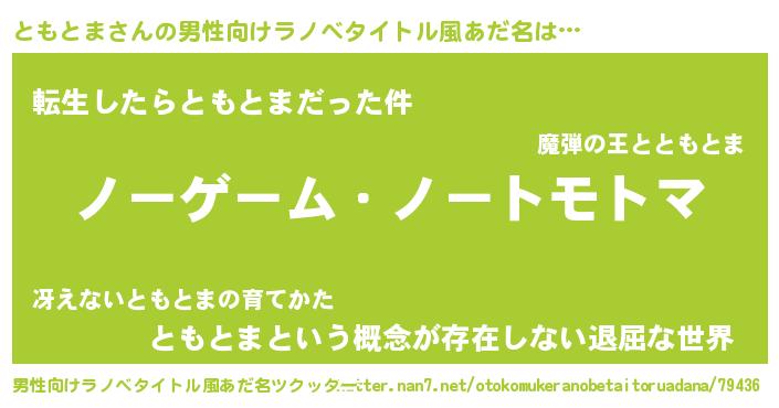 | ヘコむあだ名 | 『ともとま(小並感)』『ともにゅー』 |