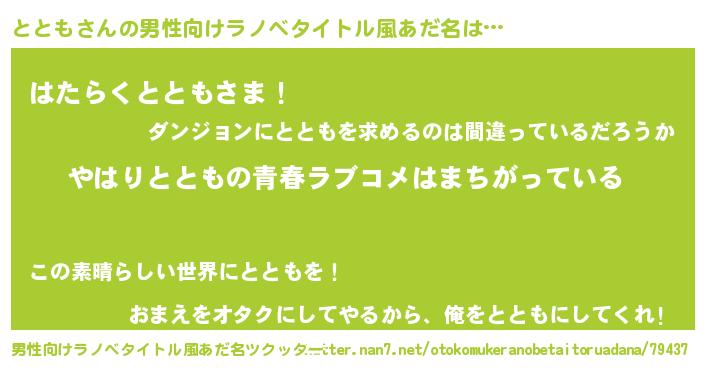 | 女子向けラノベタイトル風あだ名 | 『とともの雑貨屋さん』 |