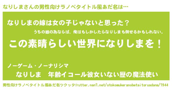 | 胡散臭い通販商品みたいなあだ名 | 『あなたにだけ特別に提供する世界で10本だけ現存している希少なブランデー…その名も「なりしま」』 |