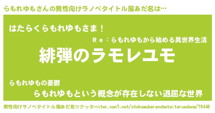 | 胡散臭い通販商品みたいなあだ名 | 『絶対に幸福をもたらす健康食品…その名も「らもれゆも」』 |