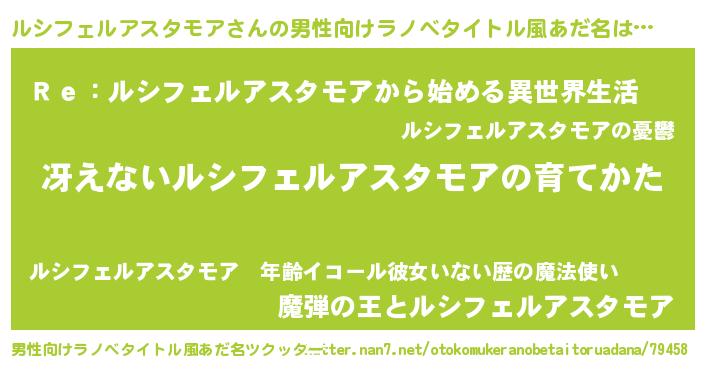 | 女子向けラノベタイトル風あだ名 | 『男装ルシフェルアスタモアの憂鬱な任務』 |