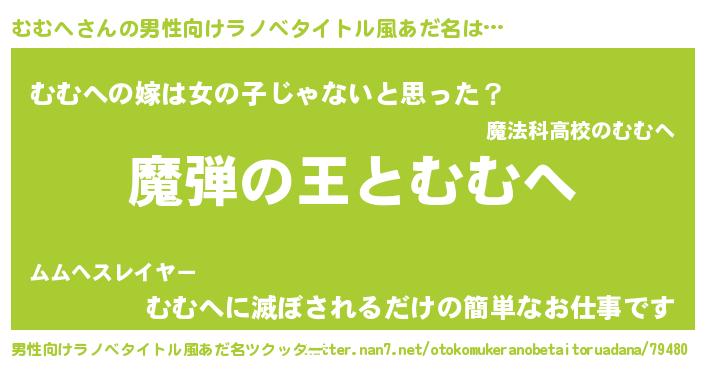 | 女子向けラノベタイトル風あだ名 | 『乙女ゲームの破滅フラグしかない悪役むむへに転生してしまった…』 |
