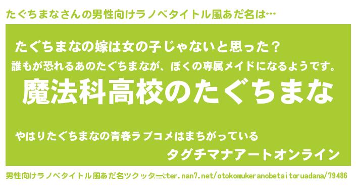 | 女子向けラノベタイトル風あだ名 | 『たぐちまななんてお断りですっ。』 |