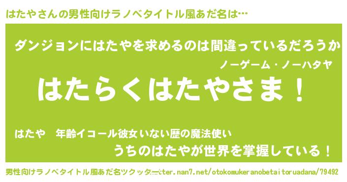 | ヒーロー風カッコイイあだ名 | 『魔戒騎士ハタ』『正義の使者はたや』 |