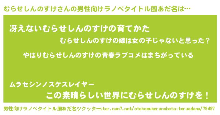 | 女子向けラノベタイトル風あだ名 | 『むらせしんのすけの雑貨屋さん』 |