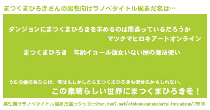 | 肩書あだ名 | 『まつくまひろき上級大将』 |