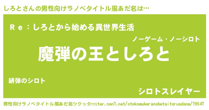 | 伝説のあだ名 | 『人々から恐れられる錬金術士しろと』 |