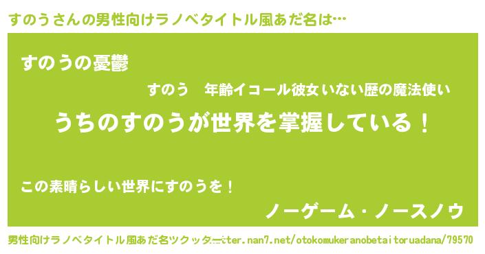 | 胡散臭い通販商品みたいなあだ名 | 『億万長者になれる霊験あらたかなお札…その名も「すのう」』 |