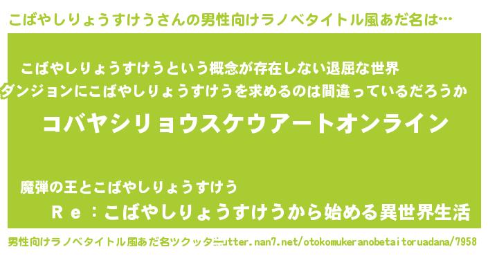 | ヒーロー風カッコイイあだ名 | 『スーパーコバヤシリョウスケウ』 |