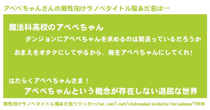 アベベちゃんさんの男性向けラノベタイトル風あだ名をツクッター!