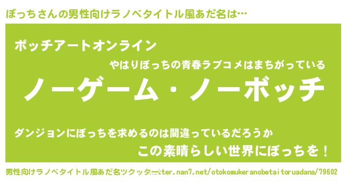 | ヘコむあだ名 | 『ぼっにー』『レバニラ』『ぼっ太郎』 |