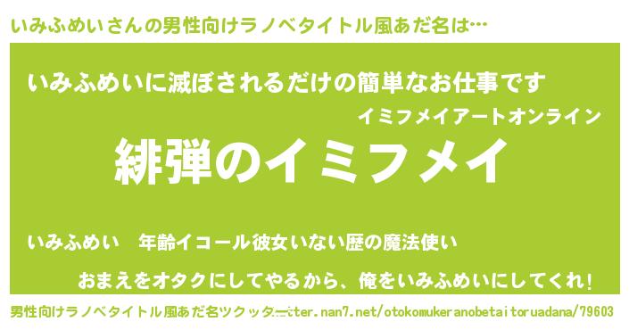 | ヒーロー風カッコイイあだ名 | 『正義の使者いみふめい』『仮面イミダー』 |