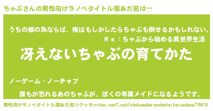 | 女子向けラノベタイトル風あだ名 | 『男装ちゃぶの憂鬱な任務』『闇のちゃぶ』 |