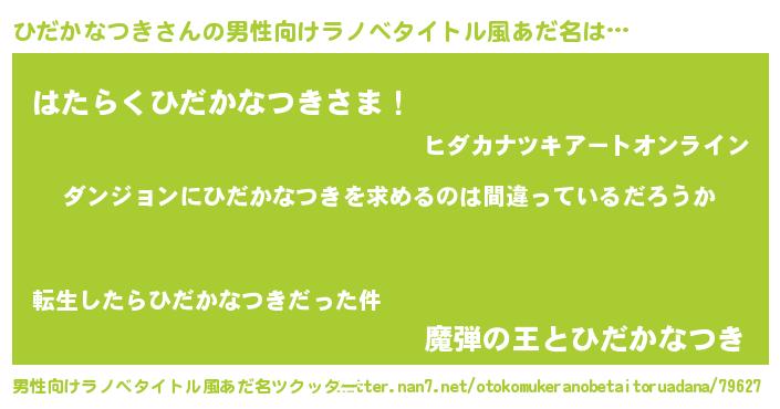 | 女子向けラノベタイトル風あだ名 | 『ひだかなつきは平凡を望む』 |