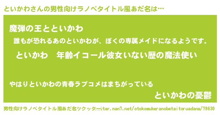 といかわさんの男性向けラノベタイトル風あだ名をツクッター!