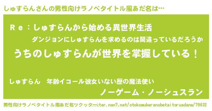 | 肩書あだ名 | 『しゅすらん艦長』『しゅすらん総統』 |