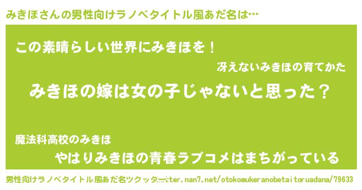| 女子向けラノベタイトル風あだ名 | 『みきほ様がみてる』『みきほ伯爵の花嫁』 |
