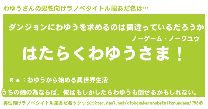 | ヒーロー風カッコイイあだ名 | 『黄金騎士ワユ』『ウルトラわゆうマン』 |