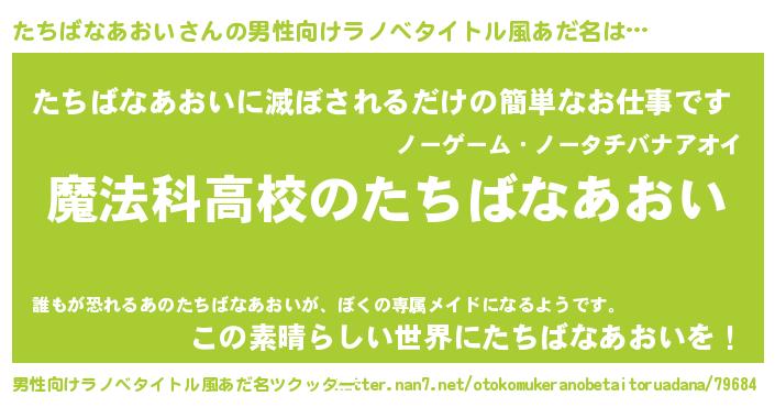 | 女子向けラノベタイトル風あだ名 | 『たちばなあおいなんてお断りですっ。』 |