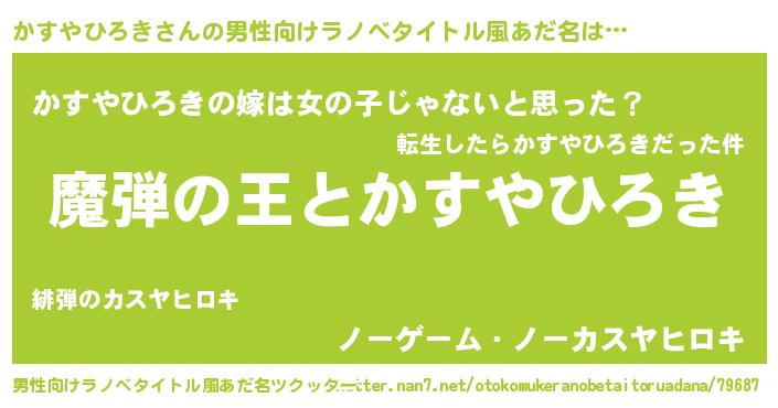 | 女子向けラノベタイトル風あだ名 | 『かすやひろきが死なない童話 林檎のかすやひろきの診療簿』 |