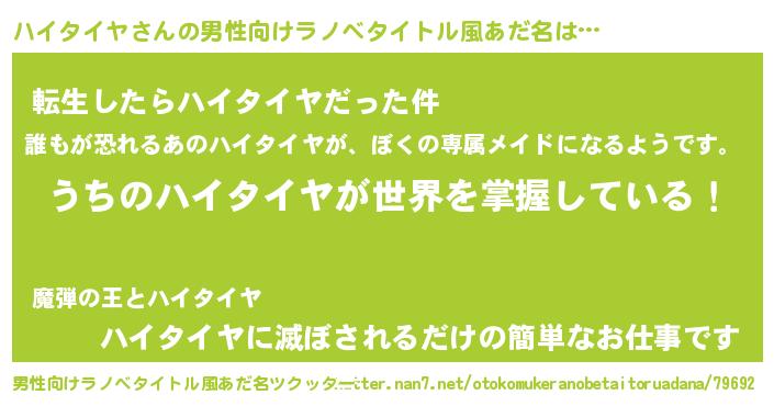 | 女子向けラノベタイトル風あだ名 | 『男装ハイタイヤの憂鬱な任務』 |