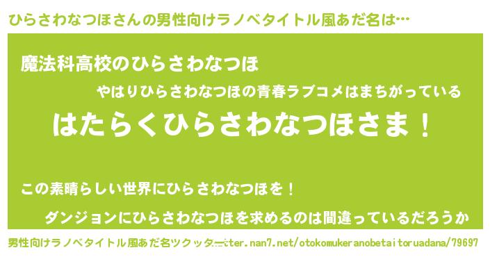 | 伝説のあだ名 | 『孤高の遊び人ひらさわなつほ』 |