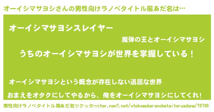 | 肩書あだ名 | 『オーイシマサヨシ船長』 |