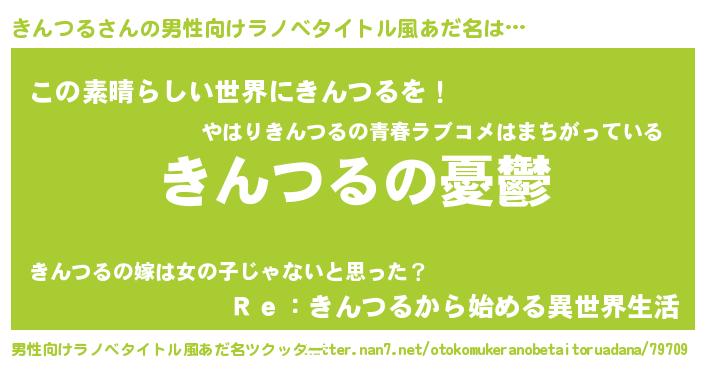 | 女子向けラノベタイトル風あだ名 | 『(仮)きんつるのやんごとなき事情』 |