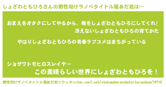 | 女子向けラノベタイトル風あだ名 | 『しょざわともひろの雑貨屋さん』 |