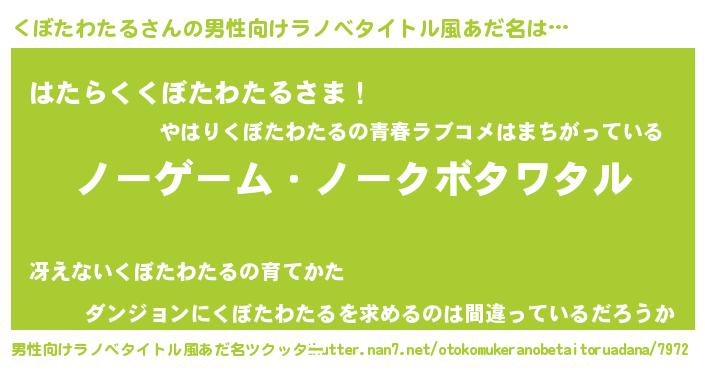 | 女子向けラノベタイトル風あだ名 | 『死神くぼたわたるの再婚』 |