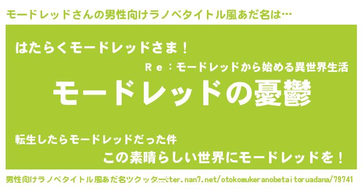 | ヒーロー風カッコイイあだ名 | 『スーパーモードレッド』『仮面モーダー』 |