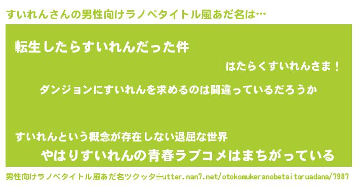 ヘコむあだ名 | 『すいを』『豆乳』『すいれん(笑)』 |