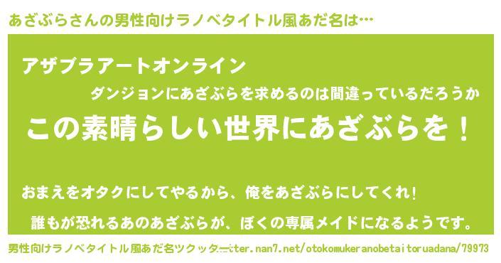 | 胡散臭い通販商品みたいなあだ名 | 『あなたにだけ特別に提供する限定10本のレアな日本酒…その名も「あざぶら」』 |