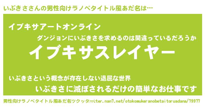 | 胡散臭い通販商品みたいなあだ名 | 『必ず成功するブレスレット…その名も「いぶきさ」』 |