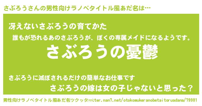 | 女子向けラノベタイトル風あだ名 | 『(仮)さぶろうのやんごとなき事情』 |