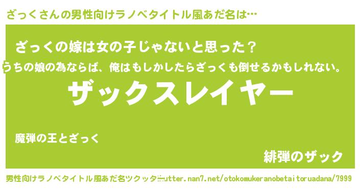 | ヒーロー風カッコイイあだ名 | 『暗黒騎士ザッ』『ウルトラざっくマン』 |