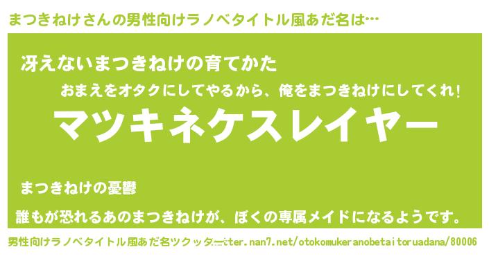 | 胡散臭い通販商品みたいなあだ名 | 『絶対に幸福をもたらす招き猫…その名も「まつきねけ」』 |