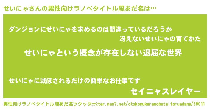 | 胡散臭い通販商品みたいなあだ名 | 『絶対に幸福をもたらす健康食品…その名も「せいにゃ」』 |