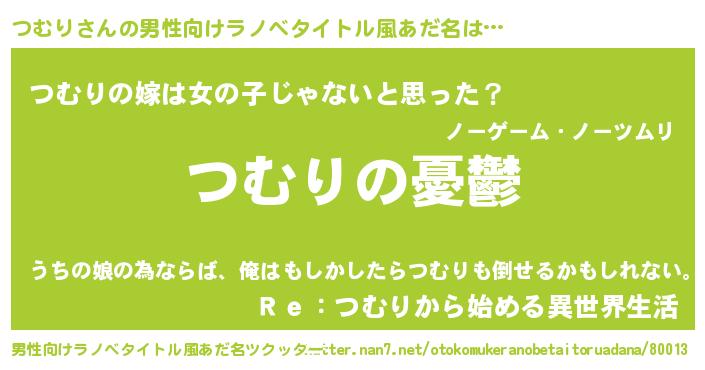 | 女子向けラノベタイトル風あだ名 | 『(仮)つむりのやんごとなき事情』 |
