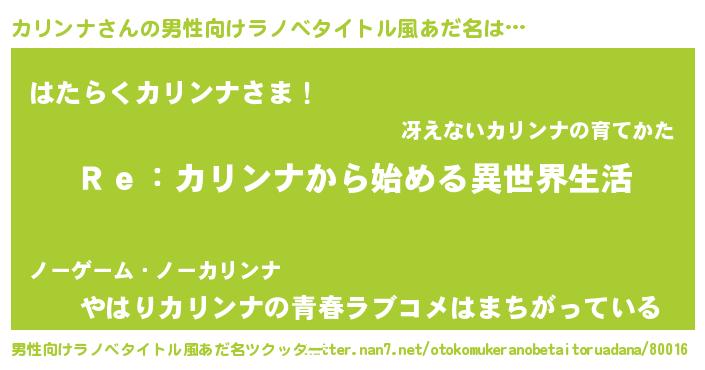 | 胡散臭い通販商品みたいなあだ名 | 『テレビで話題のアガリクス…その名も「カリンナ」』 |