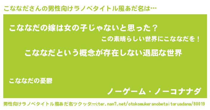 | 意味不明あだ名 | 『永久保存こななだ』『ペロリンこななだ』 |