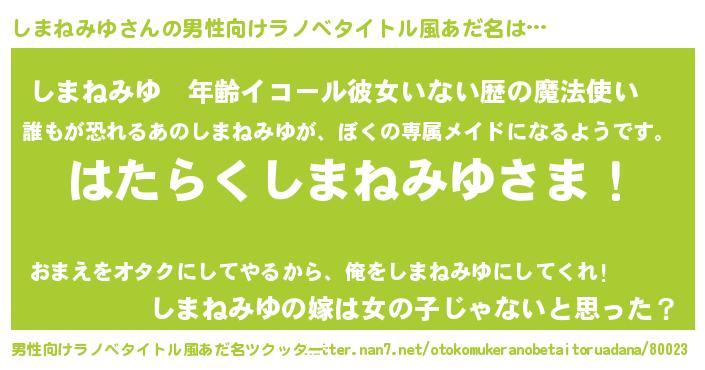 | 胡散臭い通販商品みたいなあだ名 | 『信頼と実績のネックレス…その名も「しまねみゆ」』 |
