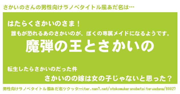 | 女子向けラノベタイトル風あだ名 | 『さかいのが死なない童話 林檎のさかいのの診療簿』 |