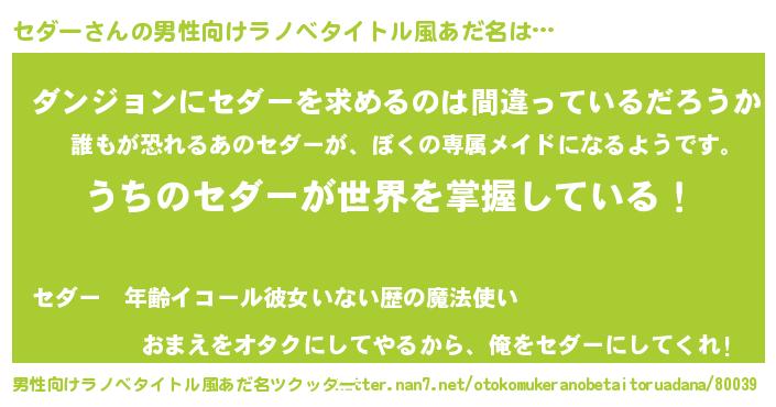 | 女子向けラノベタイトル風あだ名 | 『男装セダーの憂鬱な任務』 |