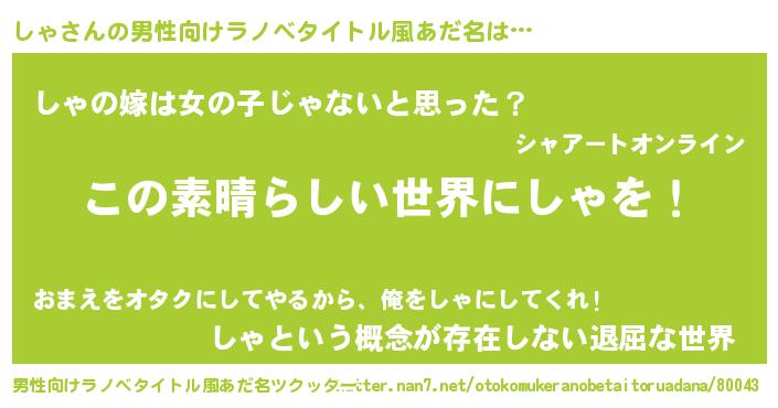 | 意味不明あだ名 | 『住所不定無職しゃ(81歳)』『永久保存しゃ』 |