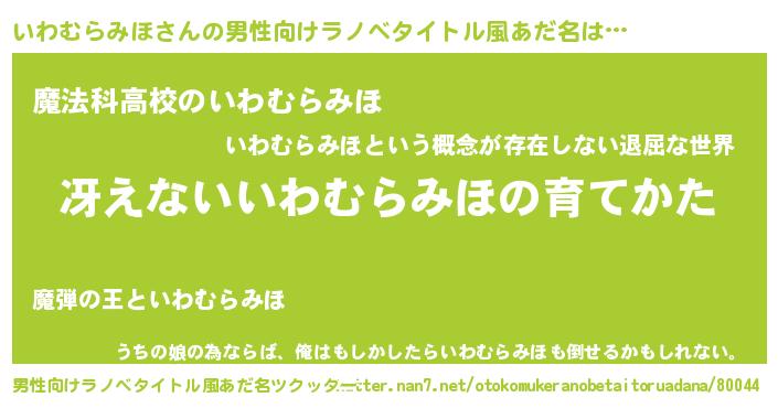 | ヒーロー風カッコイイあだ名 | 『最強戦士イワムラミホ』『仮面イワダー』 |