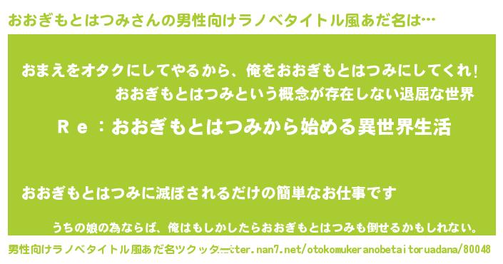 | ヒーロー風カッコイイあだ名 | 『サイバー戦士オオギモトハツミ』 |