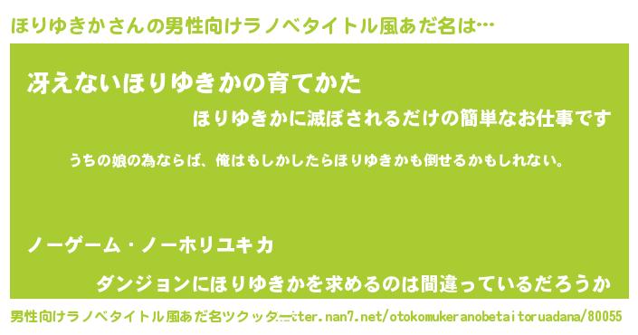 | 女子向けラノベタイトル風あだ名 | 『ほりゆきか伯爵の花嫁』 |