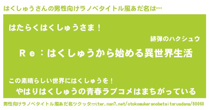 | 意味不明あだ名 | 『自称はくしゅう』『永久保存はくしゅう』 |