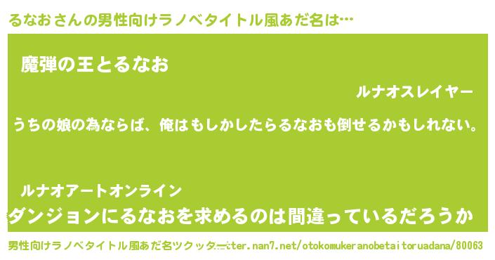 | ヒーロー風カッコイイあだ名 | 『ウルトラるなおマン』『仮面ルナダー』 |
